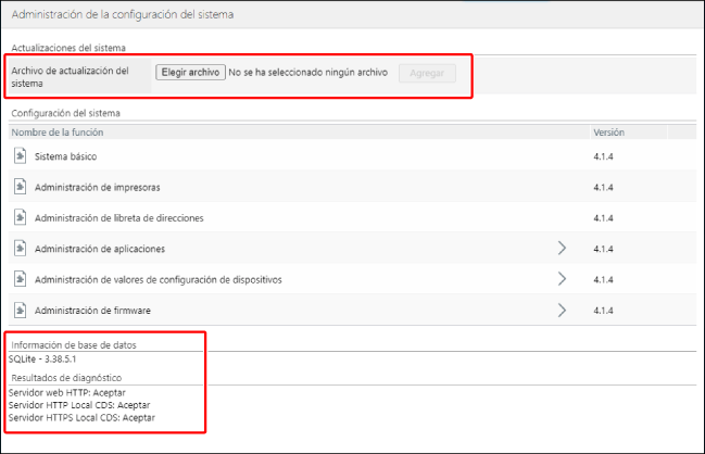 El nombre y la versión de las funciones agregadas se muestran en la página [Administración de la configuración del sistema].