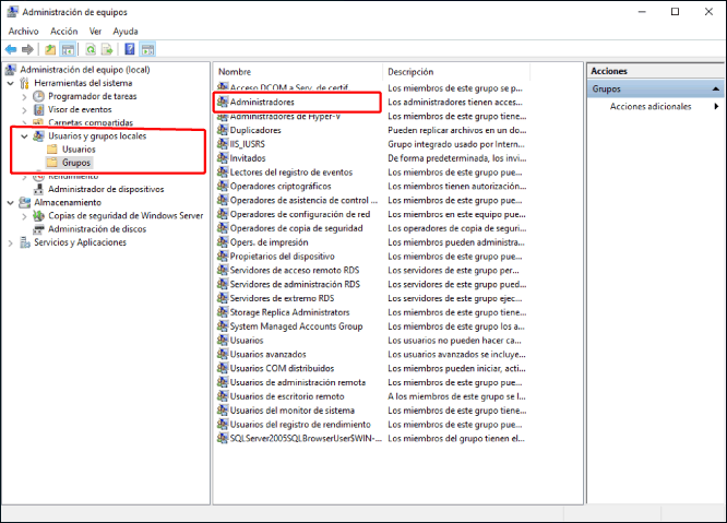 En [Usuarios y grupos locales] > [Grupos], y haga doble clic en [Administradores].