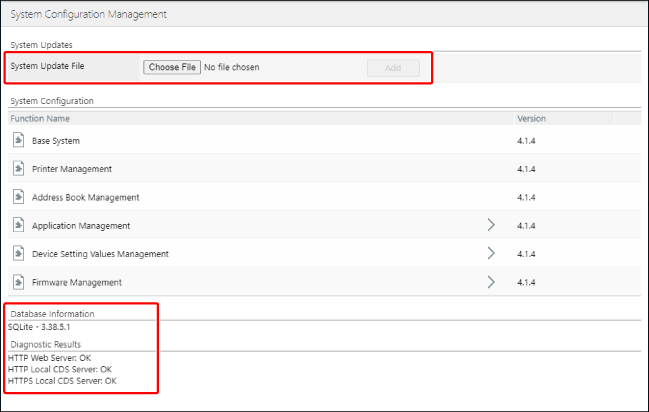 所添加功能的名称和版本显示在 [System Configuration Management] 页面上。