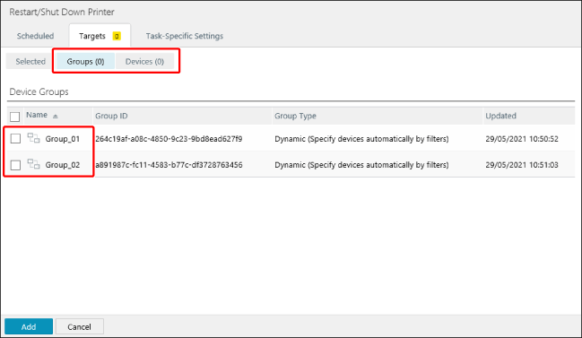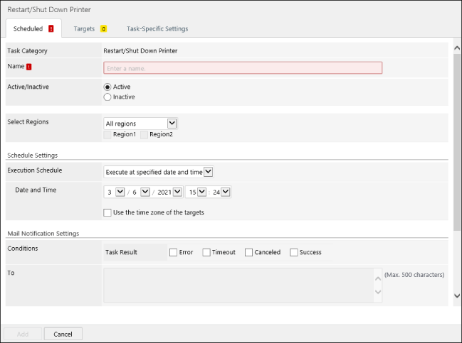 可在设备为任务的目标时设置区域。 如果设置了区域,将显示 [Select Regions]。有关详细信息,请参见下文。 |