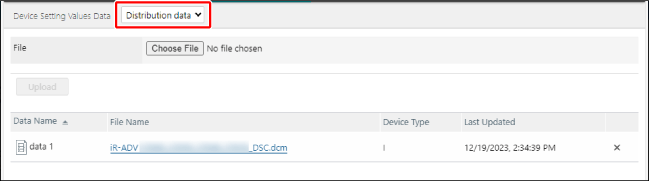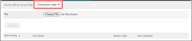 从 [Device Setting Values Data] 页面顶部的下拉列表中选择 [Distribution data]。